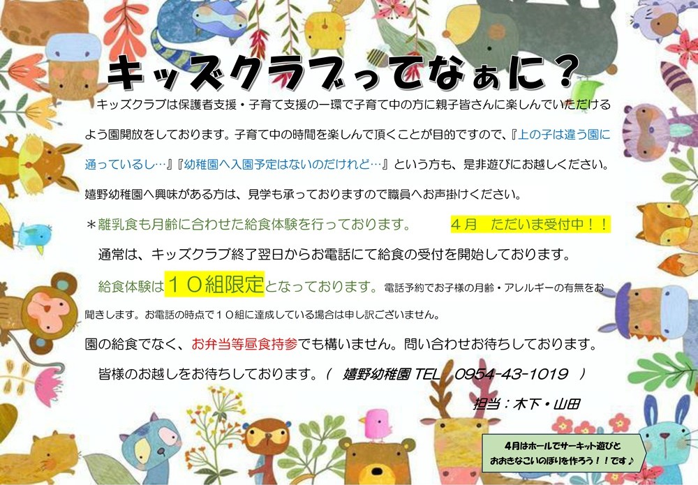 お問い合わせ ▶嬉野幼稚園 0954-43-1019